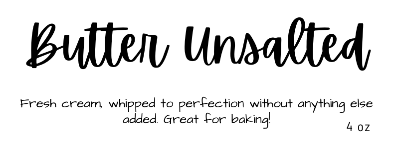 Fresh heavy cream is whipped and washed to make a simple, straight forward butter. Sold by the stick to allow for mix and match of custom compound blends.