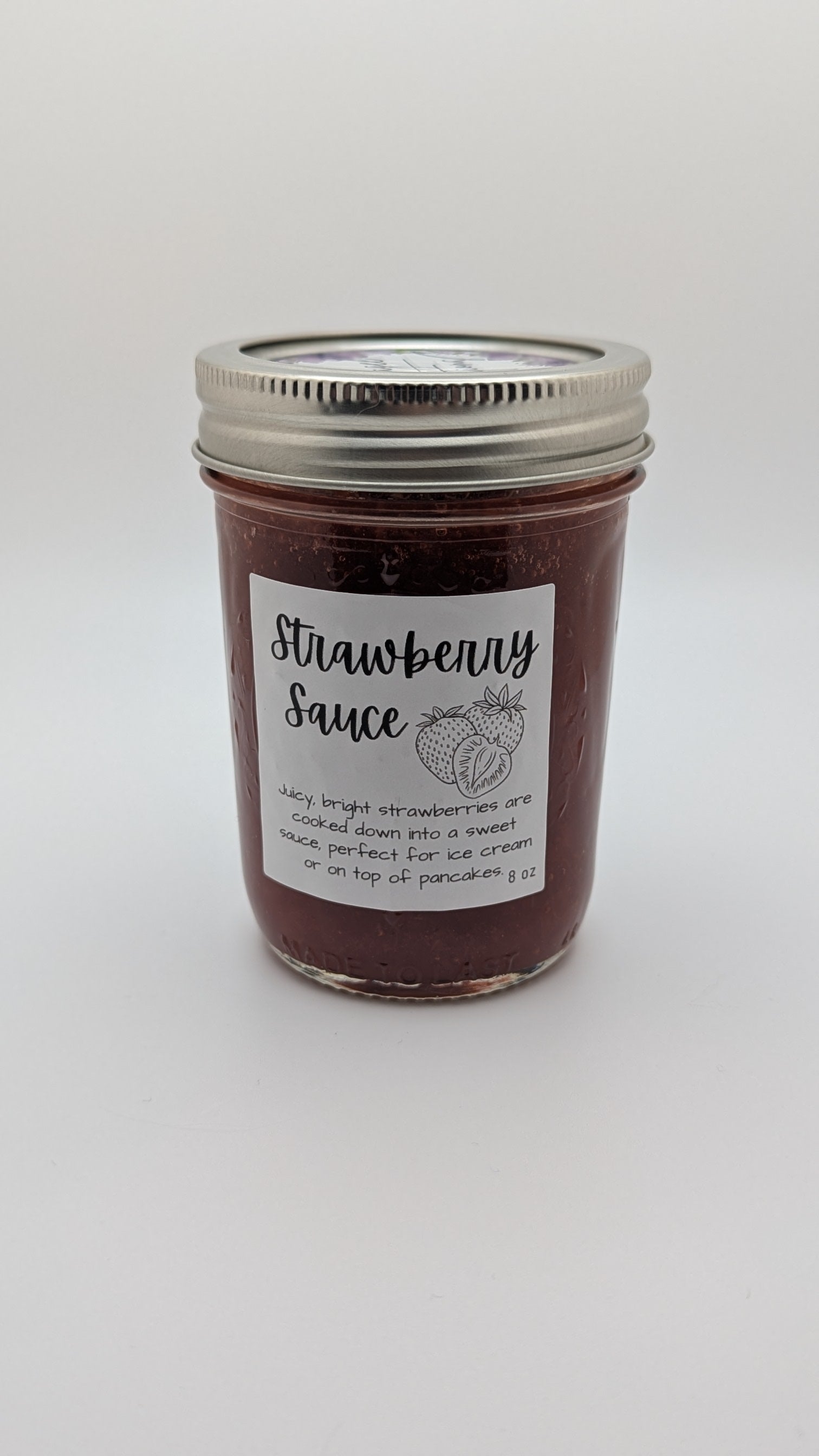 Fresh strawberries and lemon pectin have been cooked and pureed into a delicious sauce. Spoon over top of ice cream, spread on english muffins, or mix in to a glass of refreshing, fresh squeezed lemonade to add sweetness. The uses are endless!